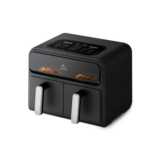 قلاية هوائية من إيڤولي بسعة 9 لتر مع 9 برامج مسبقة الإعداد، تصميم سلة مزدوجة ونافذة شفافة لمراقبة الطعام | 2400 واط.Vendor:Evvoli | The Italian LuxuryRegular price Dhs. 475Regular priceUnit price / per-