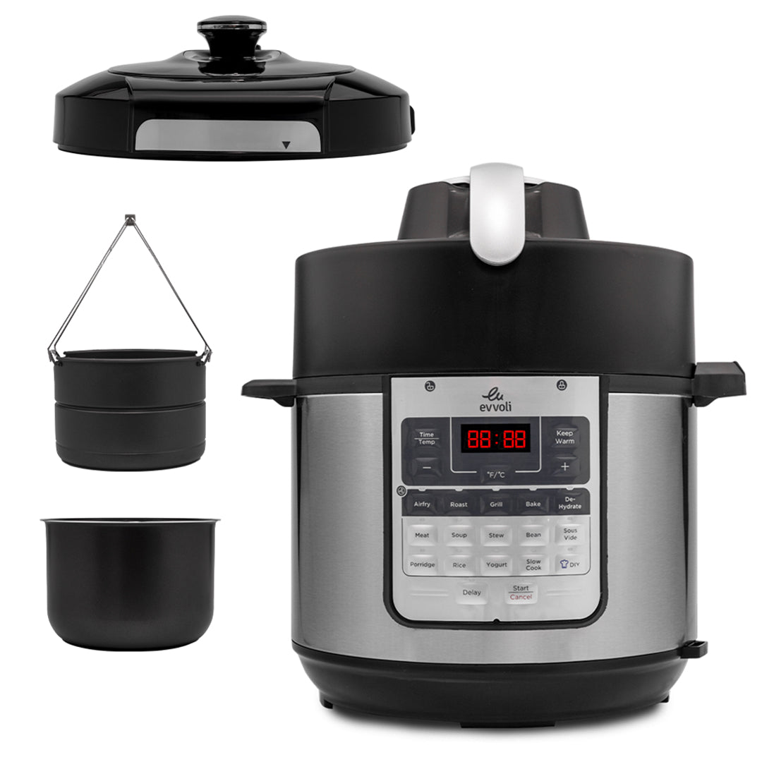 طنجرة ضغط كهربائية من إيڤولي مع مقلاة هوائية 15 في 1، 1500 واط وسعة 5.7 لتر