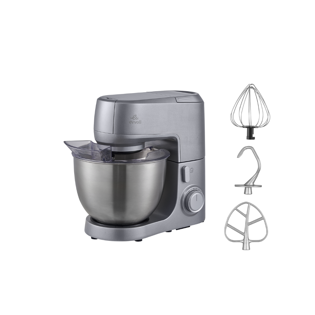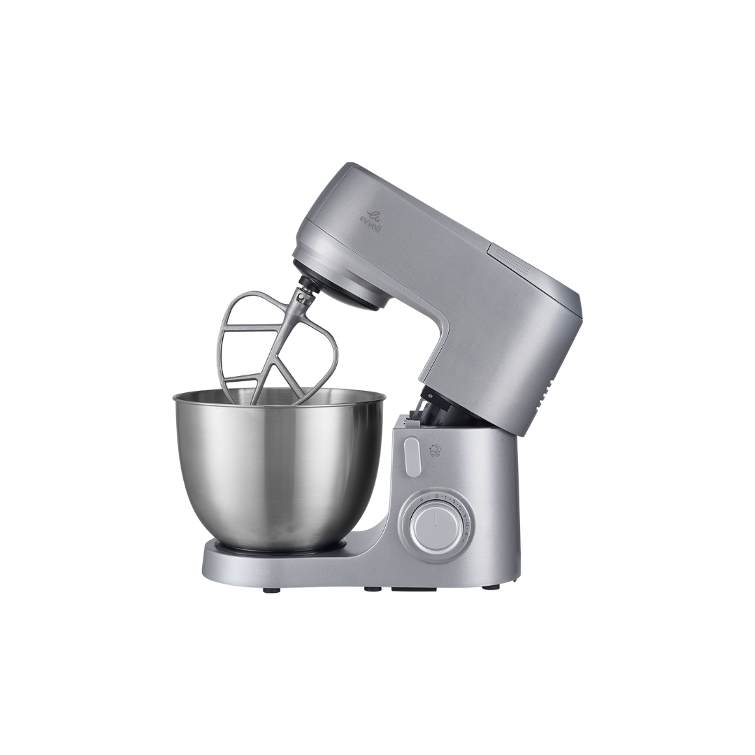 خلاط ستاند من إيڤولي ، مزود بملحق خفق من الستانليس ستيل، وخطاف للعجين، وتحكم متعدد السرعات | سعة وعاء 6.5 لتر | قوة 1200 واط