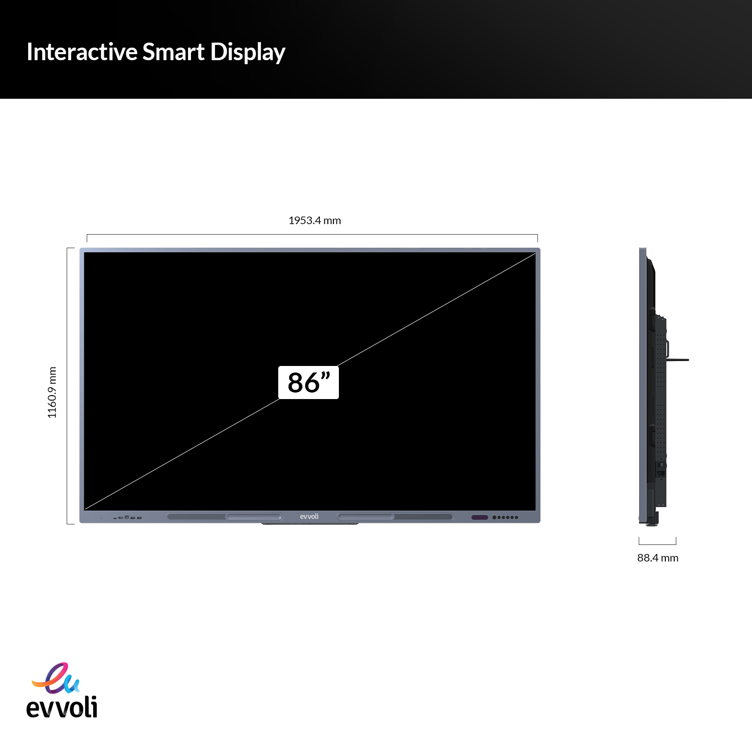 شاشة تلفاز إيڤولي الذكية التفاعلية بدقة 4K UHD بحجم 86 بوصة LED، نظام Android 13، دعم 40 نقطة لمس، مدى ليزر يصل إلى 10 أمتار