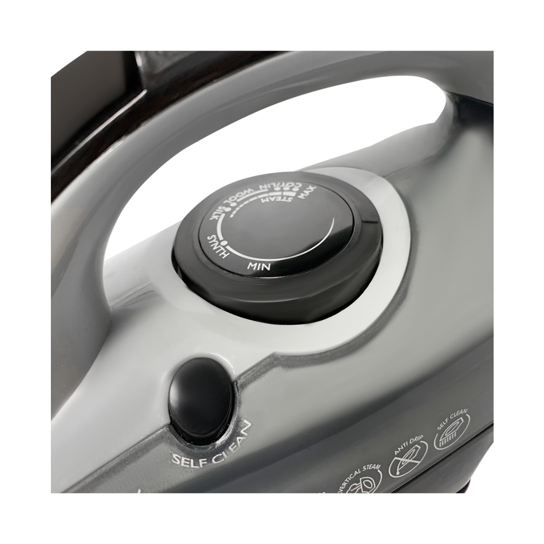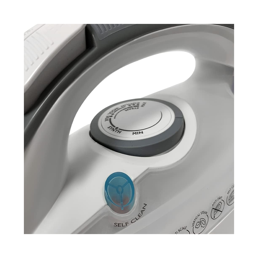 ميزة منع التنقيط: مصممة بوظيفة منع التنقيط لتجنب بقع الماء على الأقمشة، مما يضمن تجربة كيّ نظيفة. تشمل ميزة التنظيف الذاتي لسهولة الصيانة.